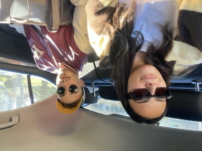 - "Two individuals, one female and one male, are seated in the rear passenger compartment of a vehicle, facing forward" by FM-5y3v73, licensed under CC BY 4.0