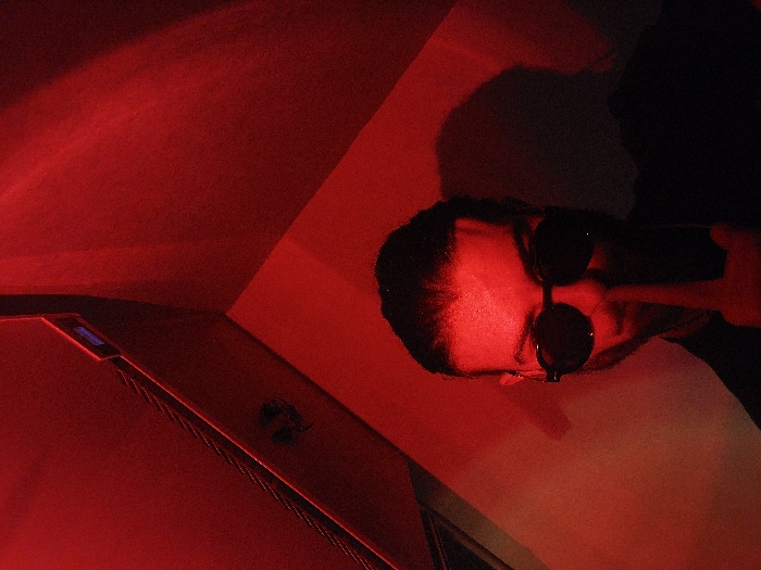 - "The scene is an indoor corner located in Slivnitsa, Bulgaria, illuminated by intense red light, casting prominent shadows" by FM-Zgw5o1, licensed under CC BY 4.0