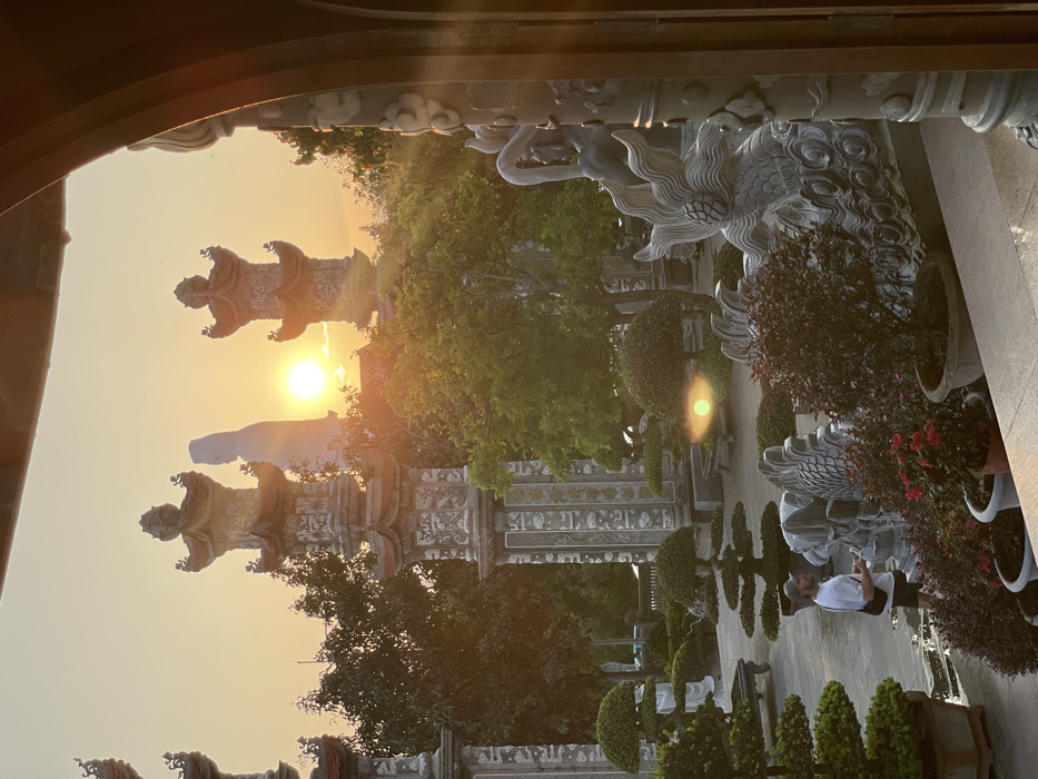 - "The image depicts a meticulously maintained temple garden at Linh Ung Pagoda on Son Tra Peninsula, Da Nang, Vietnam, during golden hour, likely sunset, characterized by warm, low-angle sunlight" by FM-CmfrU2, licensed under CC BY 4.0