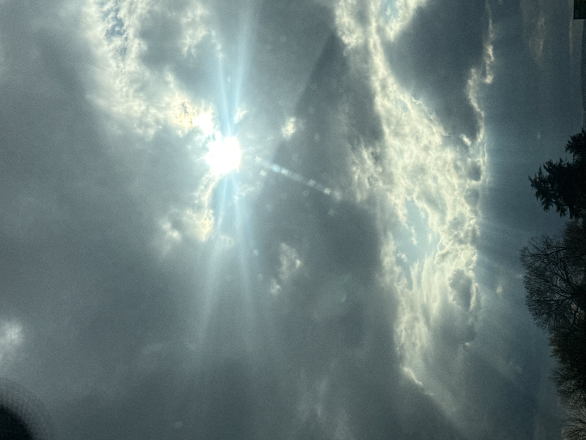 daytime sky with the sun shining through a break in the clouds