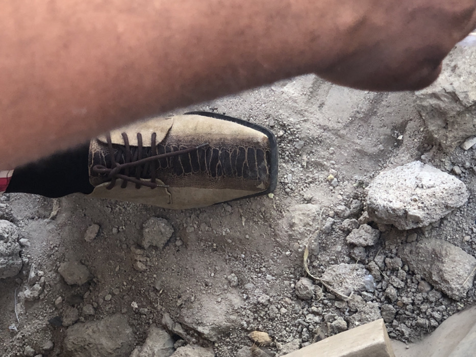 - "The image depicts a close-up, high-angle view of a person's lower right leg and foot, standing on uneven, unpaved ground in Bauchi, Nigeria" by FM-iGFmW2, licensed under CC BY 4.0