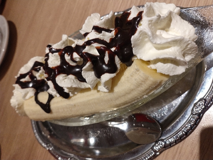 - "A banana split is presented in a decorative silver dish" by FM-M4lpO2, licensed under CC BY 4.0