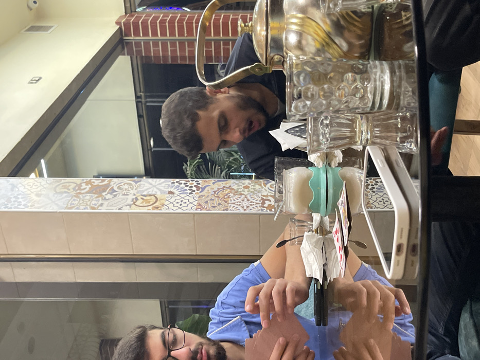 - "Two young adult males are seated at a black, reflective table within a cafe or restaurant in the city of Homs, Syria" by FM-jBMJn1, licensed under CC BY 4.0