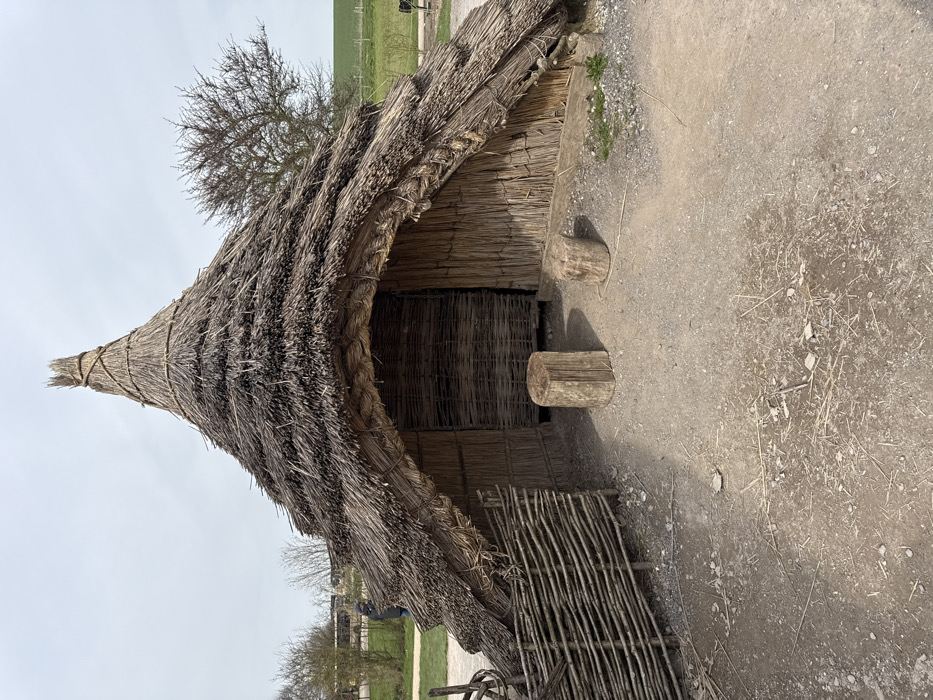 - "The image depicts a reconstructed Neolithic-style hut, situated at the Stonehenge Visitor Centre in Amesbury, United Kingdom, under an overcast sky" by FM-WgO0P2, licensed under CC BY 4.0