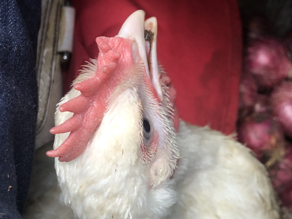 - "A close-up, right-profile view depicts the head and upper body of a white chicken" by FM-Hf7RJ2, licensed under CC BY 4.0