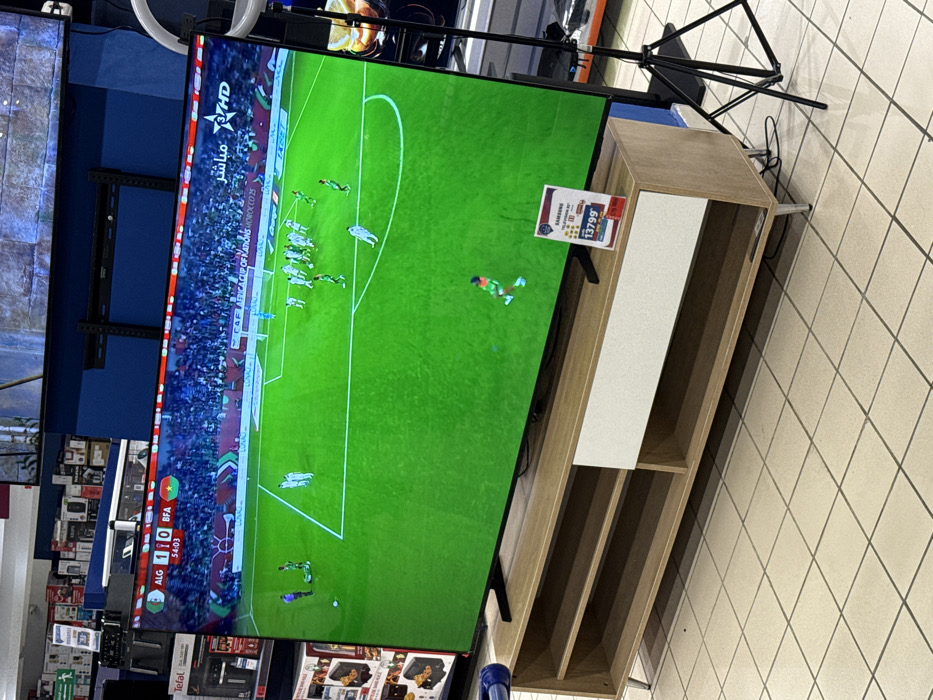 A television displays a live soccer match between Algeria (ALG) and Burkina Faso (BFA)