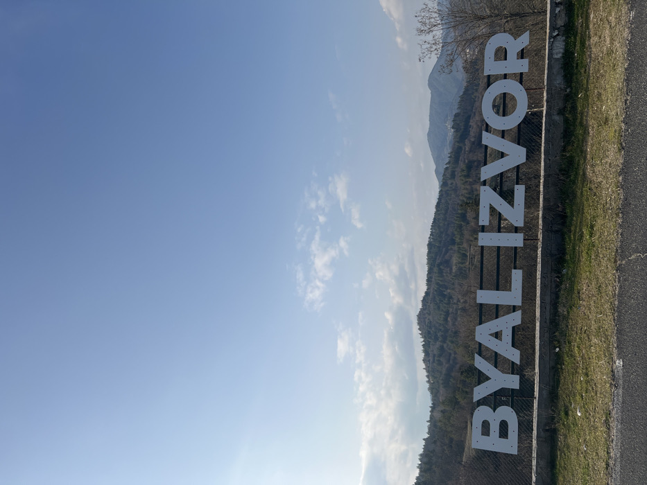 - "The image displays a large white sign spelling "BYAL IZVOR" in capitalized, dimensional letters, centrally positioned against a backdrop of rolling, forested mountains and a clear blue sky with scattered white clouds" by FM-yFnm82, licensed under CC BY 4.0
