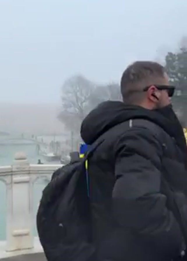 The video depicts a scene in Venice, Italy, on a foggy day