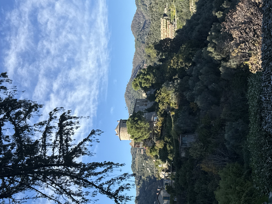 - "The image displays a panoramic view of a hilly, heavily vegetated landscape in Portofino, Italy, under a bright blue sky with scattered white cirrus clouds" by FM-yjK1X2, licensed under CC BY 4.0