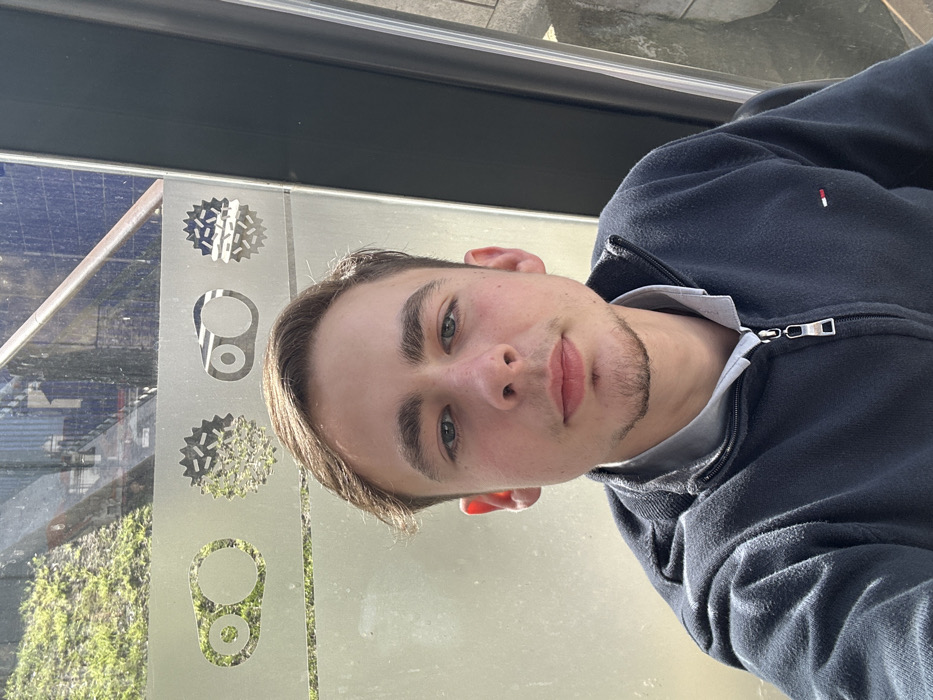 - "A portrait-oriented photograph features a young Caucasian male, approximately 18-25 years old, with short brown hair, blue-green eyes, and a light goatee beard, looking directly at the camera with a neutral expression" by FM-5WnvD2, licensed under CC BY 4.0