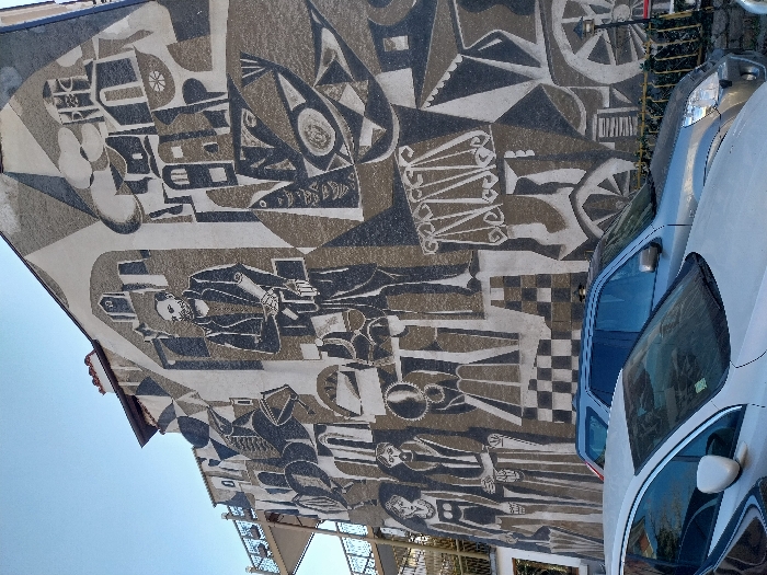 - "An exterior, low-angle daytime view captures a multi-story building in Plovdiv, Bulgaria, featuring a large, intricate mural covering a significant portion of its side wall" by FM-oxdLZ2, licensed under CC BY 4.0