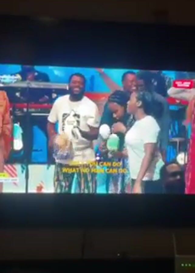 television screen displaying a live performance of what appears to be a gospel or worship song