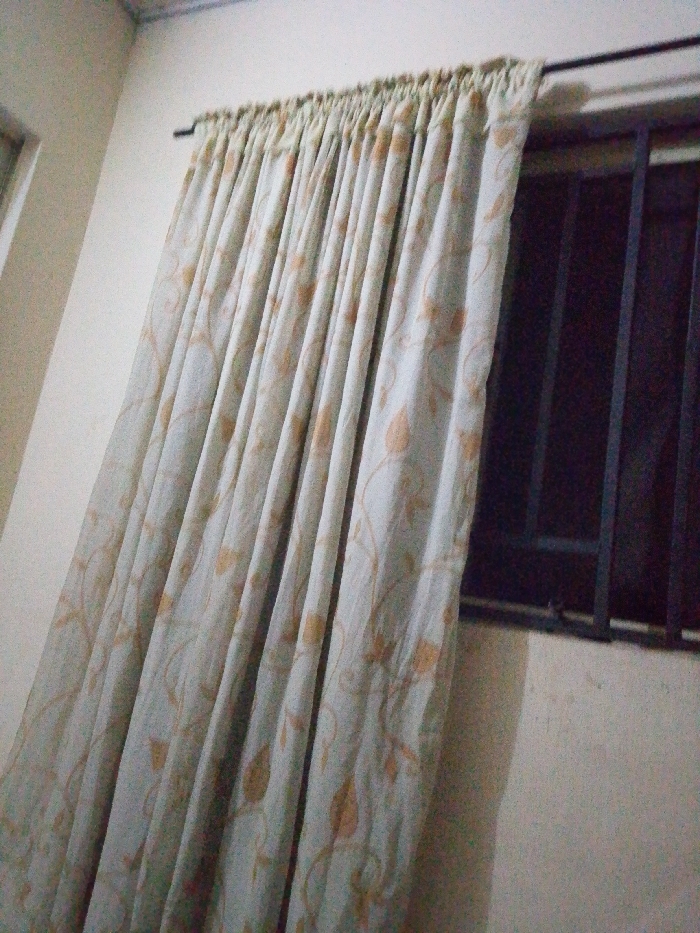 The image captures an interior scene in Abatete, Nigeria, focusing on a window and curtain assembly