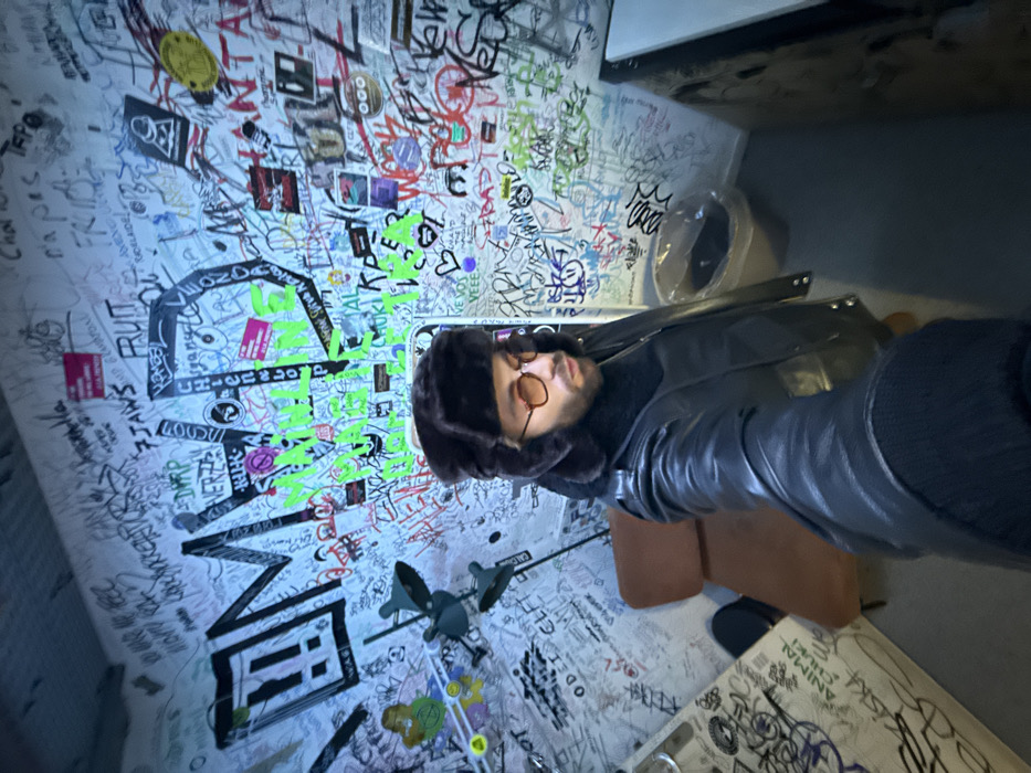 - "A male individual is depicted taking a selfie inside a heavily graffitied interior space, identified as Le Groom bar in Lyon, France" by FM-EvMDo2, licensed under CC BY 4.0