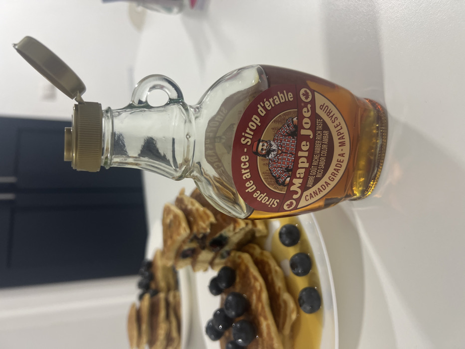 - "A clear glass bottle of "Maple Joe" brand maple syrup, with an open, upward-angled light brown cap, stands prominently on a white table in an indoor setting within Mogán, Spain" by FM-33L543, licensed under CC BY 4.0