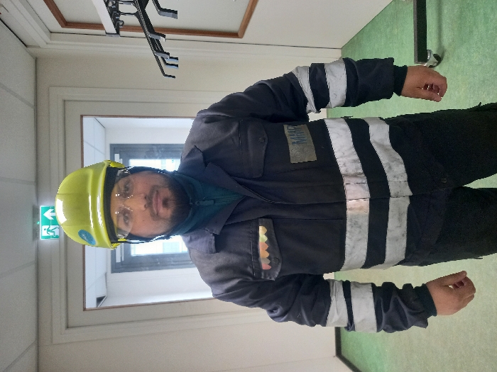 A male individual stands facing forward in an indoor setting identified as Maasvlakte Rotterdam, Netherlands