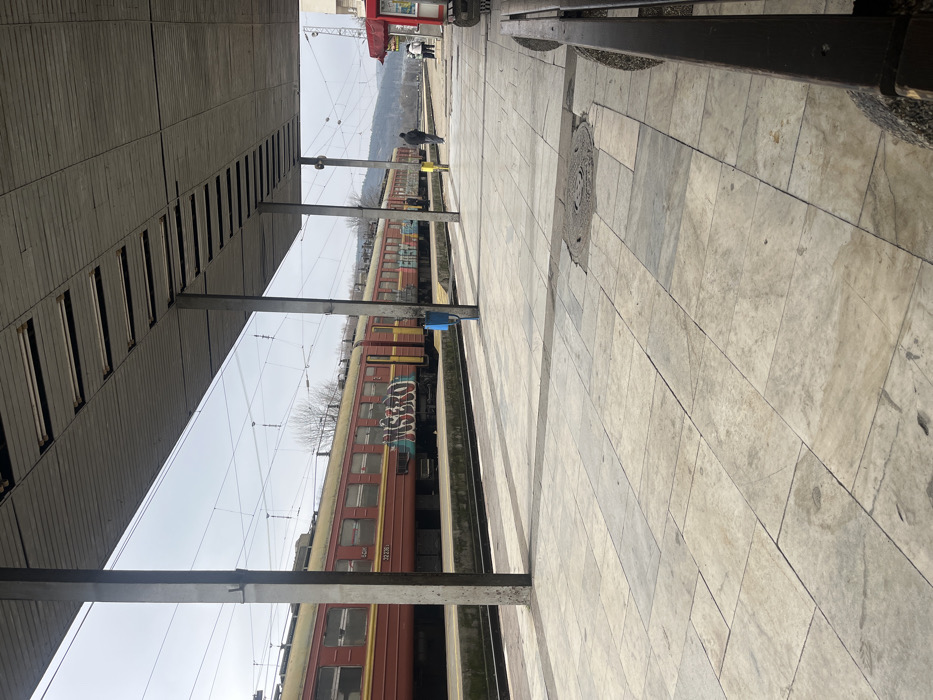 - "The image depicts the Mezdra train station platform in Mezdra, Bulgaria, under an overcast sky" by FM-88ou53, licensed under CC BY 4.0