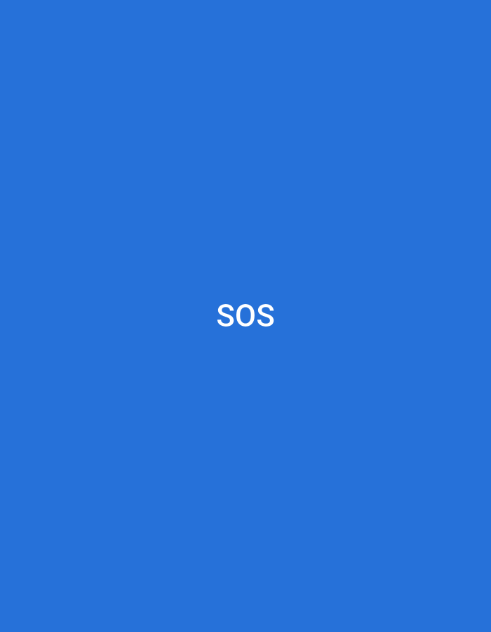 A plain, solid blue background dominates the image. Centered horizontally and vertically is the white text "SOS" in a simple, sans-serif font. The stark contrast between the blue background and the white text makes the message immediately noticeable. The overall composition is minimalist, drawing attention to the distress signal.