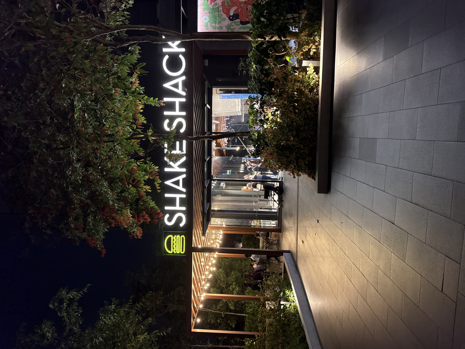 An exterior, nighttime image depicts the Shake Shack restaurant situated at The Exchange TRX in Kuala Lumpur, Malaysia