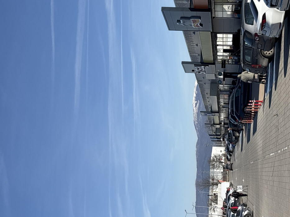 - "The image depicts an outdoor commercial area in Elin Pelin, Bulgaria, under a clear blue sky marked by multiple white contrails" by FM-6911v1, licensed under CC BY 4.0