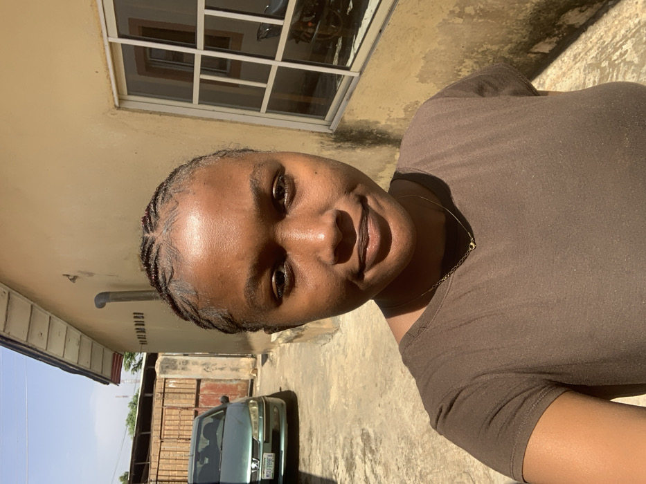 A young Black female individual is depicted in a daytime outdoor setting in Jos, Nigeria, appearing to take a self-portrait