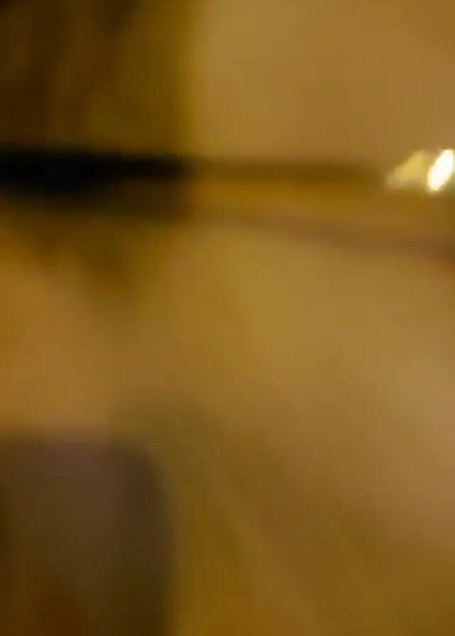 The video begins with a close-up of a man's face, wearing glasses, with a blurred city skyline visible in the background. The camera then moves to show a group of people walking along a paved area at night. The people are mostly seen from the back. The lighting is dim and appears to be from streetlights and distant city lights.