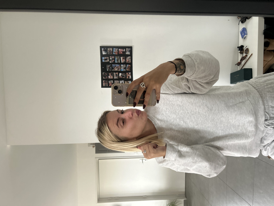 A blonde female, appearing in her 20s or 30s, is captured taking a mirror selfie indoors in Chambœuf, France