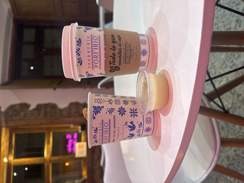 This image captures a table setting at a Churrería Porfirio establishment in Zacatlán, Mexico