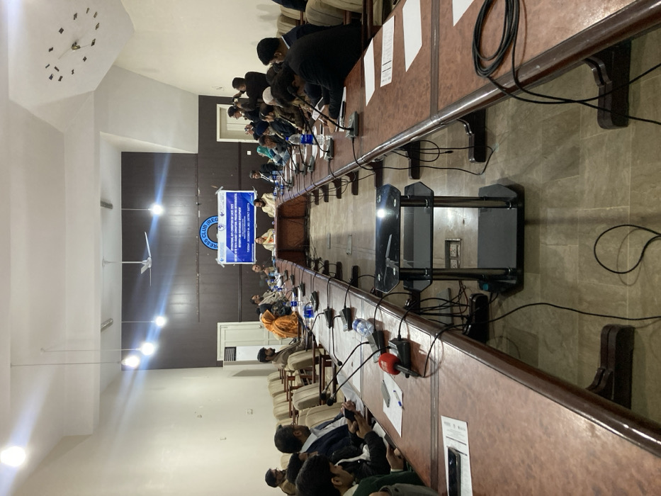 This image depicts an indoor event, specifically a conference or seminar, held at the Quetta Press Club in Quetta City Tehsil, Pakistan