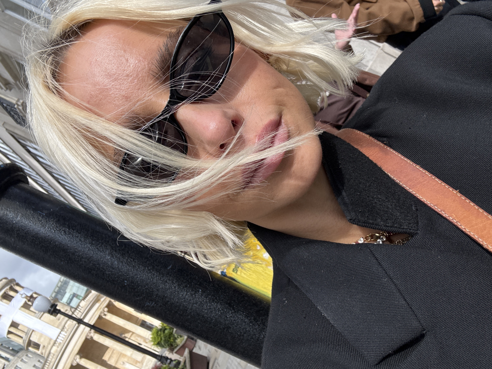 - "A close-up selfie depicts an individual with short, platinum blonde hair, dark, angular sunglasses, and tan skin, looking towards the camera" by FM-lgQ922, licensed under CC BY 4.0