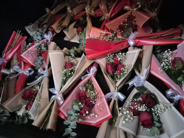 - "A large assortment of individual rose bouquets are clustered together" by FM-1nsqW2, licensed under CC BY 4.0