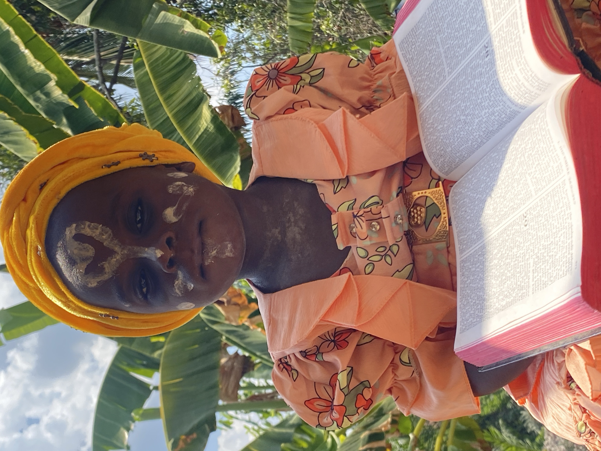 An outdoor, eye-level portrait in Achara, Nigeria, depicts a dark-skinned child looking directly forward