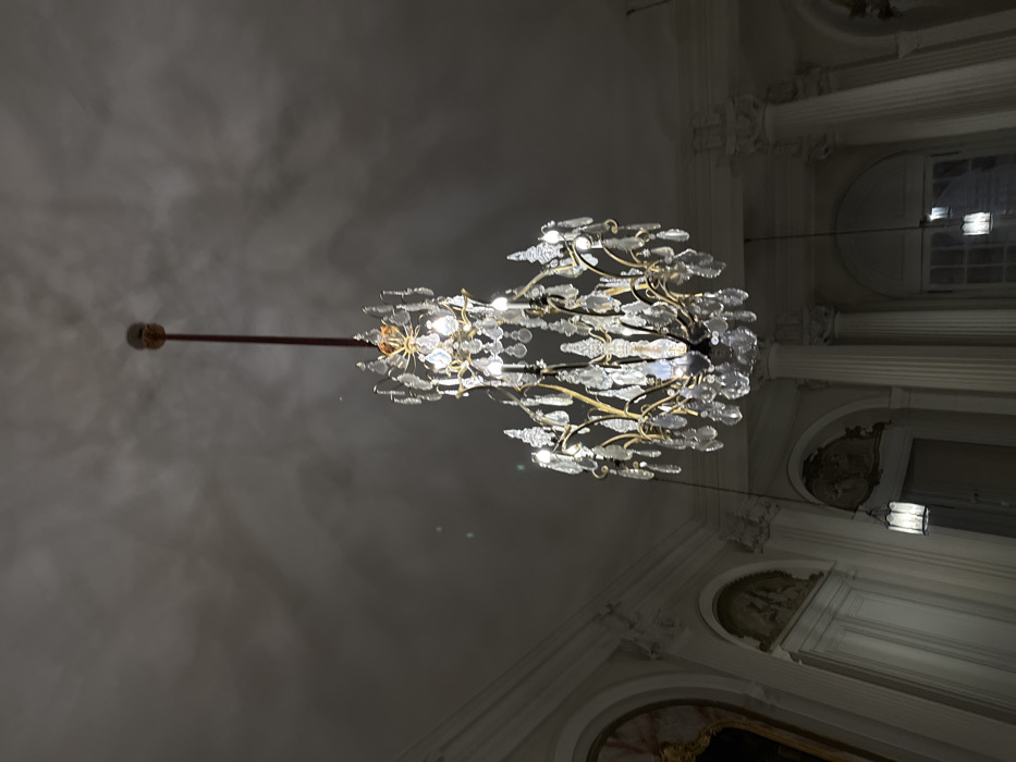 - "An ornate crystal chandelier hangs from the ceiling, its delicate glass elements reflecting light" by FM-IL2Dl2, licensed under CC BY 4.0