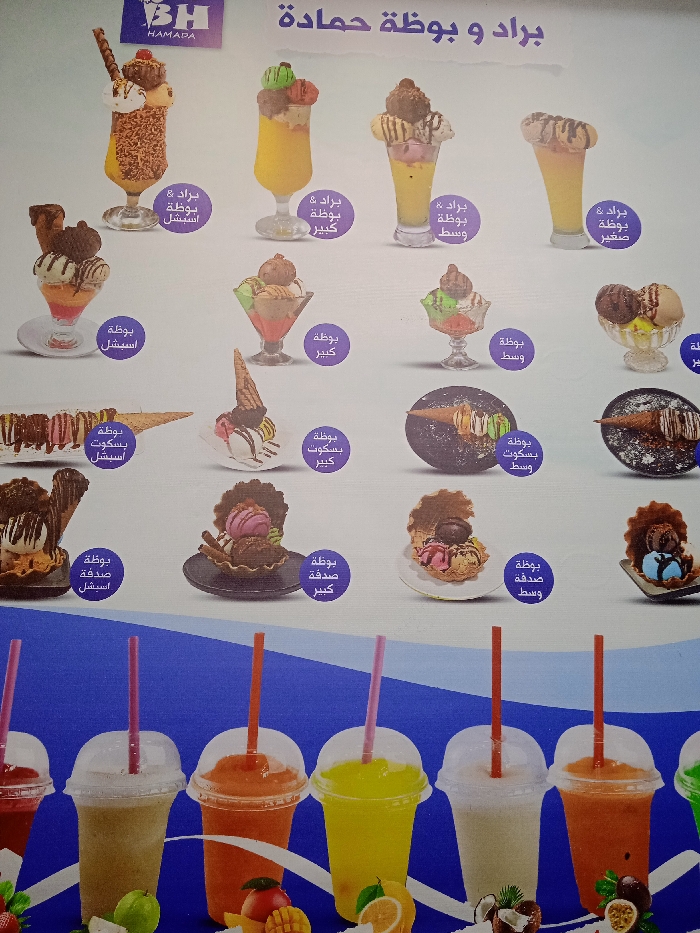 - "The image showcases a menu from "Hamada," featuring ice cream and smoothies" by FM-taMrd2, licensed under CC BY 4.0