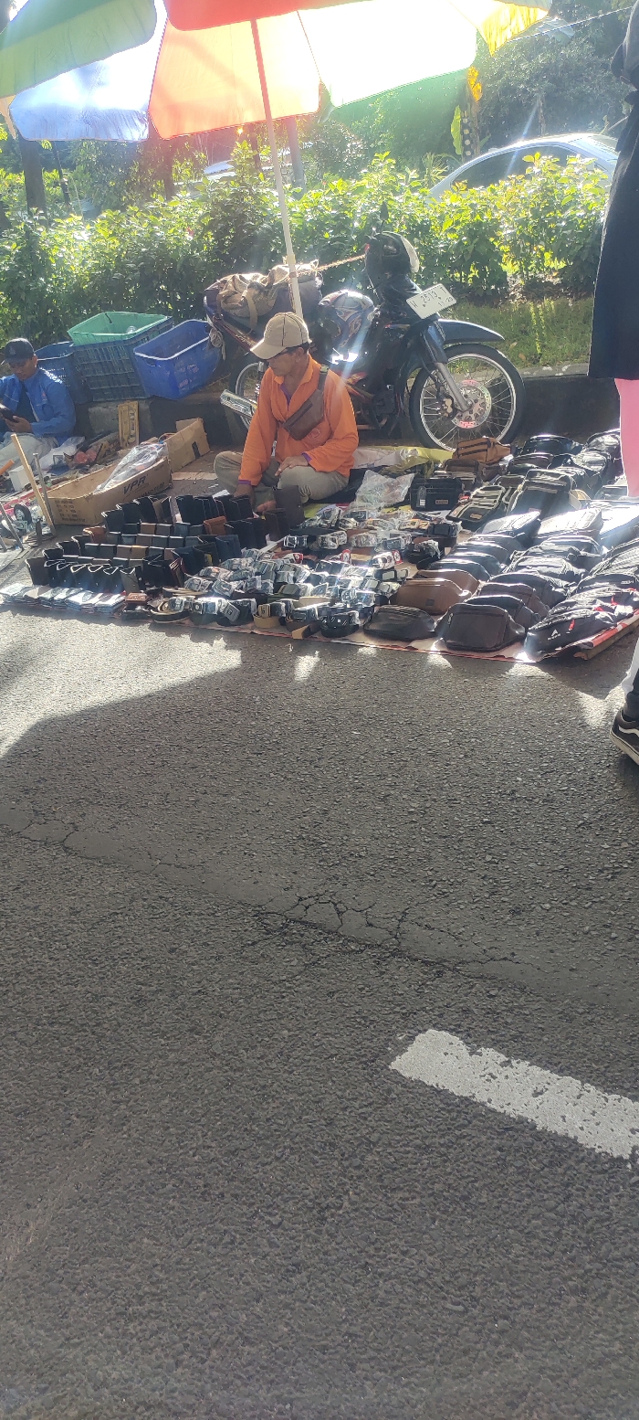 The scene is a street market in Kecamatan Sidoarjo, Indonesia, located at coordinates -7