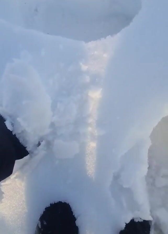 The video begins with a close-up of a gloved hand holding a snowball, standing in snowy ground with bootprints visible