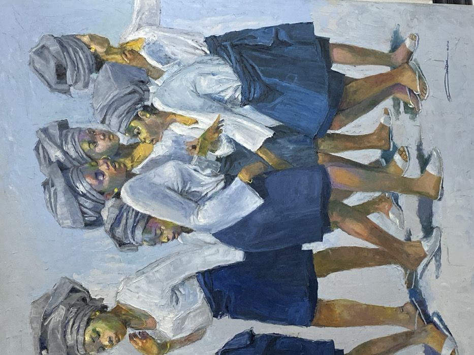- "This oil painting depicts a dynamic group of seven adult females, ostensibly within the city of Ikate, Nigeria, arranged in a walking formation" by FM-ZL5X22, licensed under CC BY 4.0