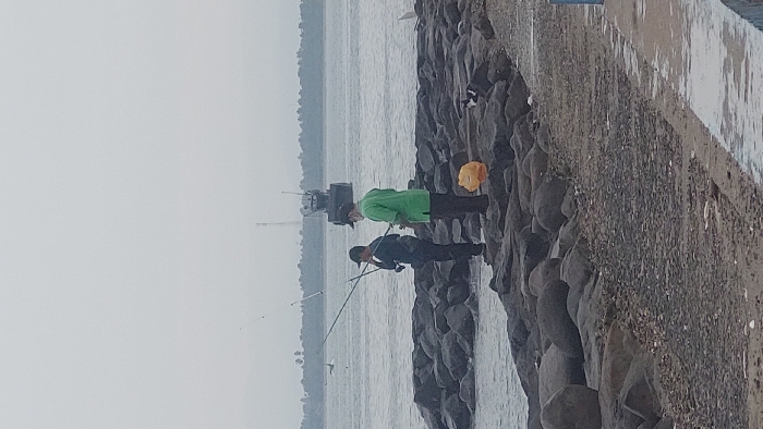 - "Two people fish from a rock embankment next to the water" by FM-s5bAy2, licensed under CC BY 4.0