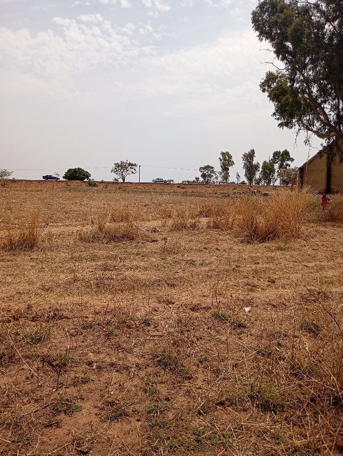 The scene depicts a dry, open landscape in Pankshin, Nigeria, under a partly cloudy sky