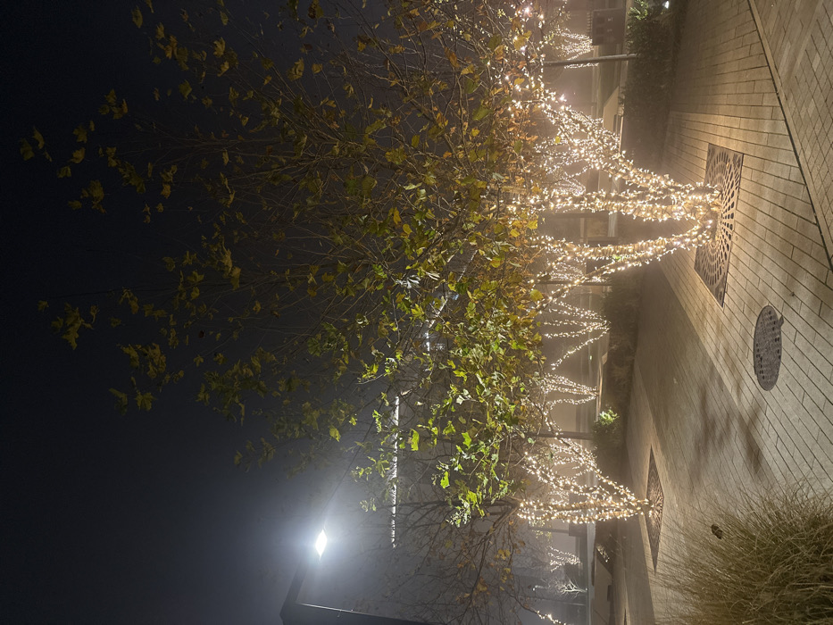 - "A street at night features trees adorned with strings of warm white lights" by FM-cVWYb2, licensed under CC BY 4.0