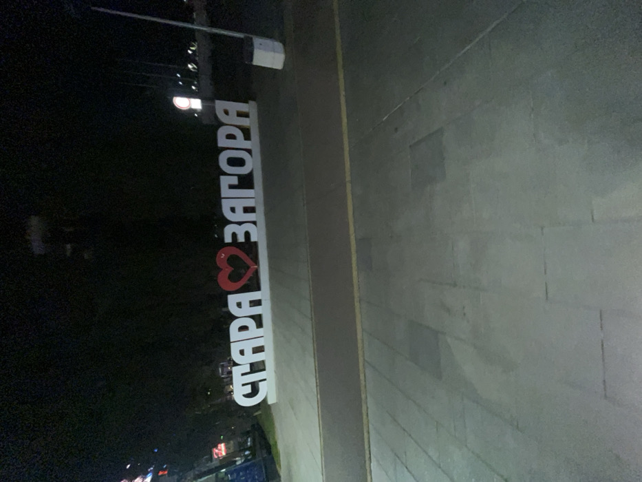 The image depicts a nighttime scene in Stara Zagora, Bulgaria