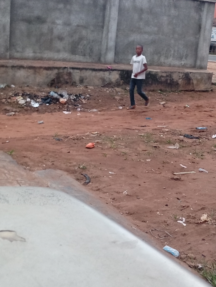 - "A young boy in a white t-shirt and jeans walks on a dirt path littered with trash" by FM-vnTjF3, licensed under CC BY 4.0