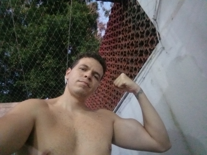 - "A shirtless man poses outdoors, flexing his right bicep" by FM-kzA8r2, licensed under CC BY 4.0