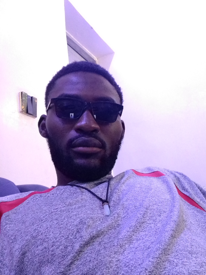 A close-up, chest-up portrait of a single adult male, situated indoors in what is presumed to be Jos, Nigeria