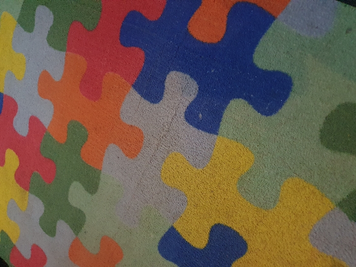 - "close-up of colorful puzzle piece-shaped floor tiles" by FM-pKwoW2, licensed under CC BY 4.0