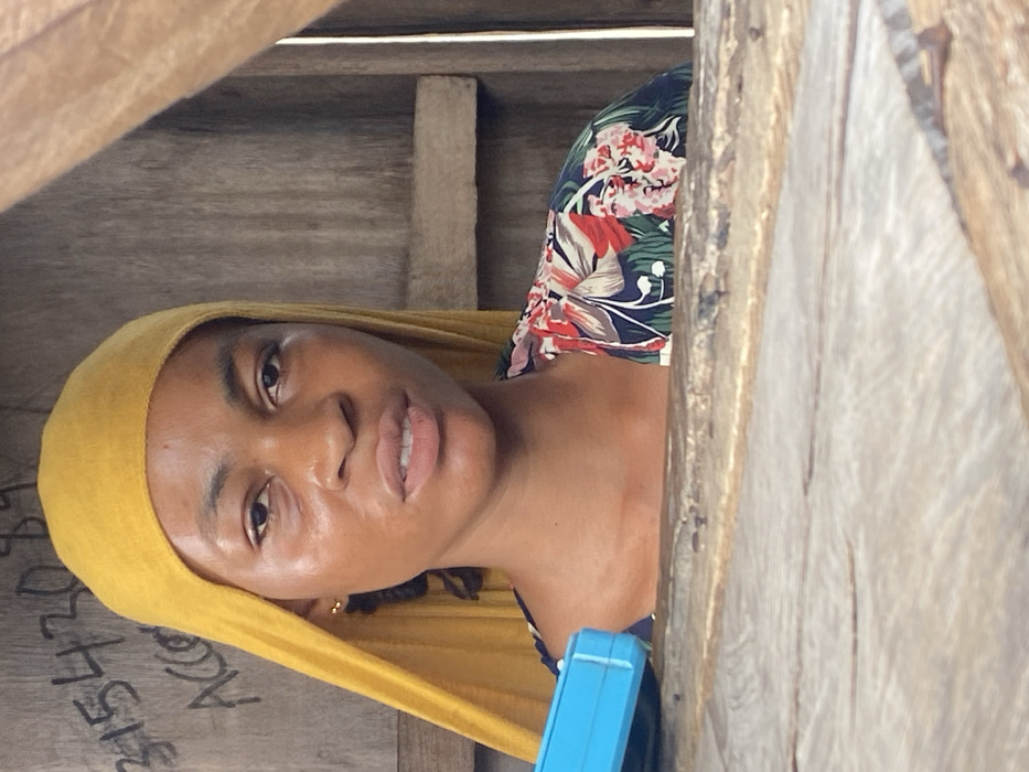 This image captures a young adult woman in a commercial setting within Adankolo, Nigeria