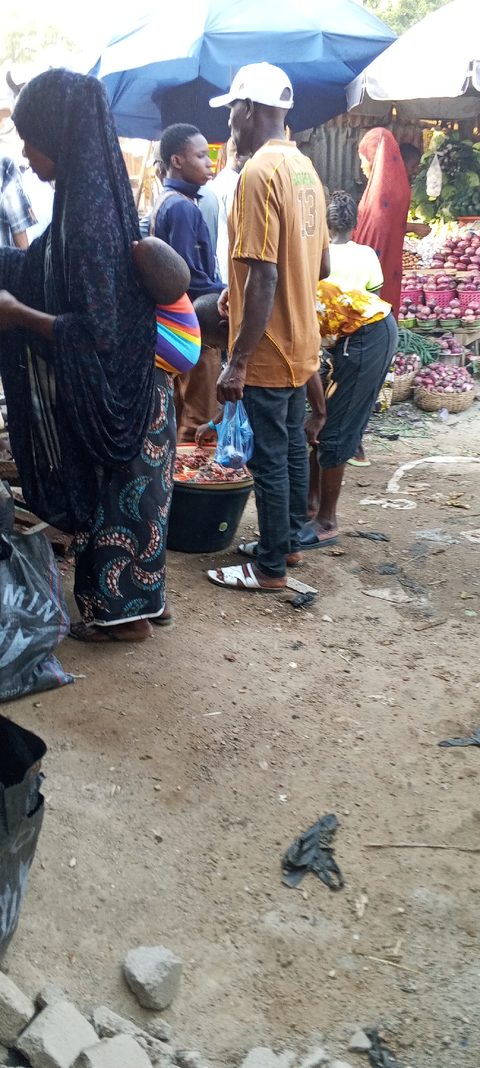 This image depicts an active outdoor market scene in Nassarawa, Nigeria