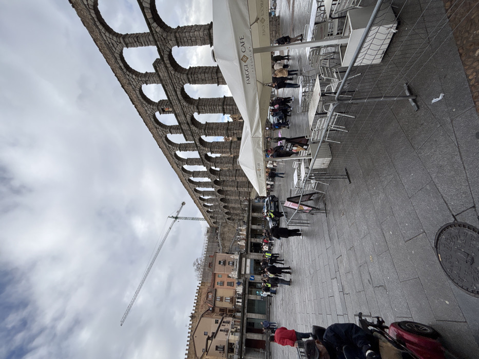 - "The image displays the Plaza del Azoguejo in Segovia, Spain, dominated by the ancient Roman Aqueduct of Segovia on the right, which is a multi-tiered stone structure composed of numerous arches extending diagonally into the background" by FM-Uh5pH2, licensed under CC BY 4.0