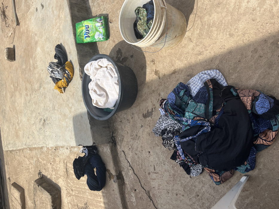 An outdoor scene in the city of Kakau, Nigeria, depicts a laundry area on a sunny day