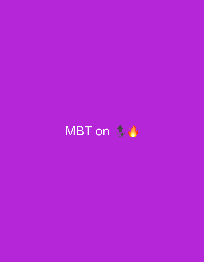 The image displays a solid, uniform purple background. Centered horizontally on the upper-middle section of the background, white capital letters spell "MBT on". To the immediate right of "on", a small, upward-pointing arrow icon is depicted, with the word "TOP" in smaller white capital letters positioned directly beneath the arrow's head. Immediately to the right of the "TOP" arrow icon, a yellow and orange flame emoji is present. No people, physical objects, or environmental details are discernible that would indicate a specific real-world location within the city of Sofia, Bulgaria, or elsewhere.